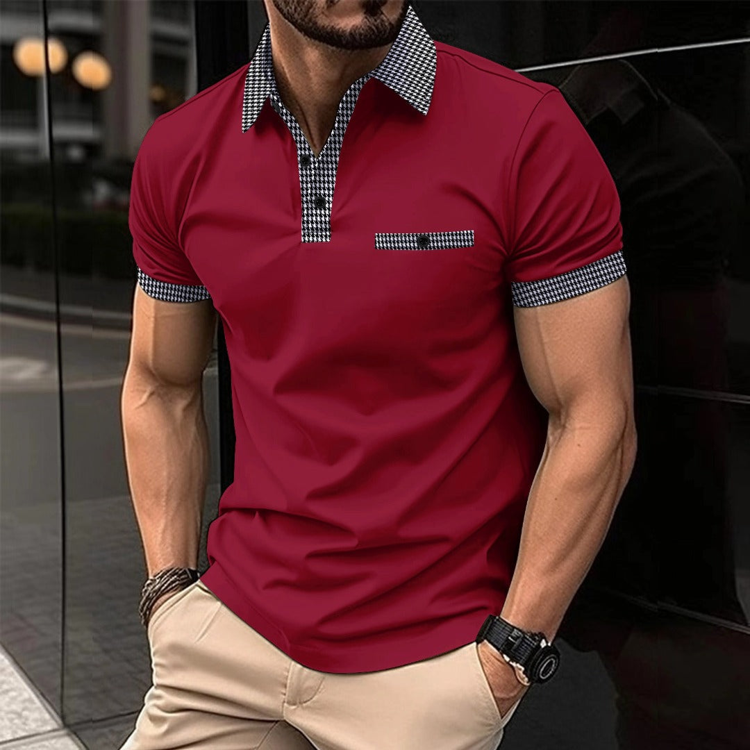 Men's Button Color Block Polo Shirt