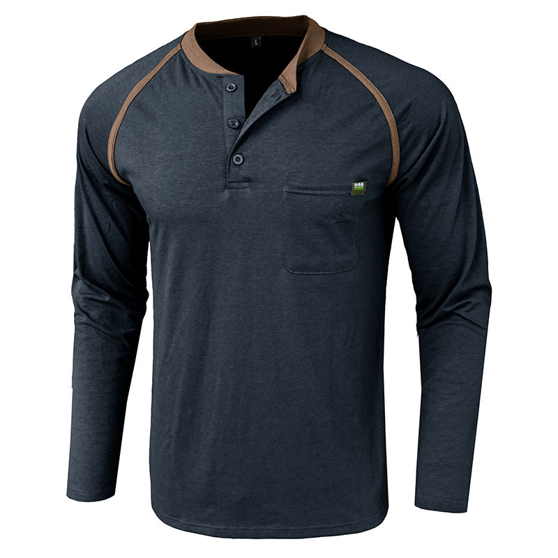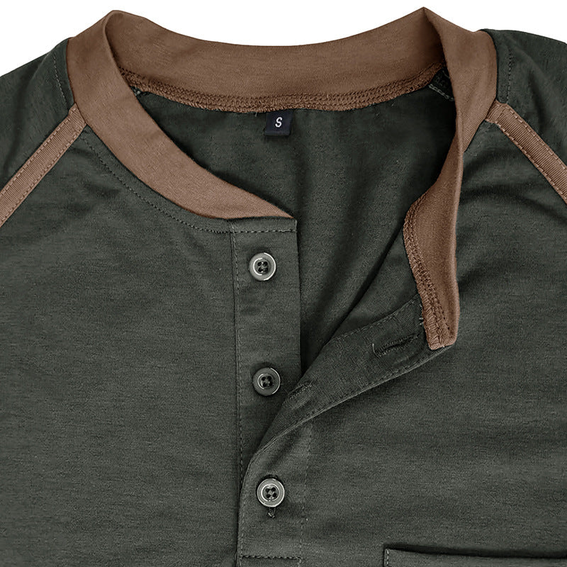 Men's Color Block Long Sleeve Henley Shirt