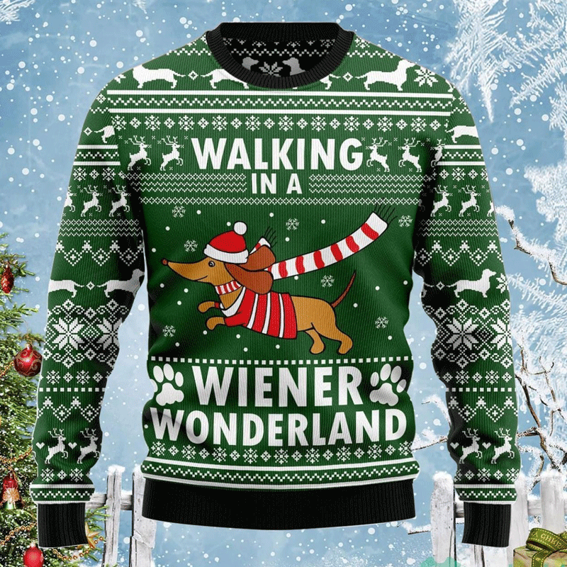 Unisex 3D Dachshund Through The Snow Christmas Funny Green Ugly Sweatshirt