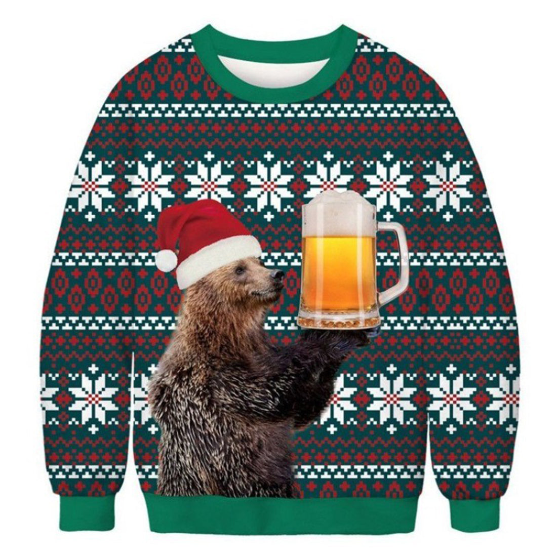 Unisex 3D Sloth Beer Fun Print Christmas Sweatshirt