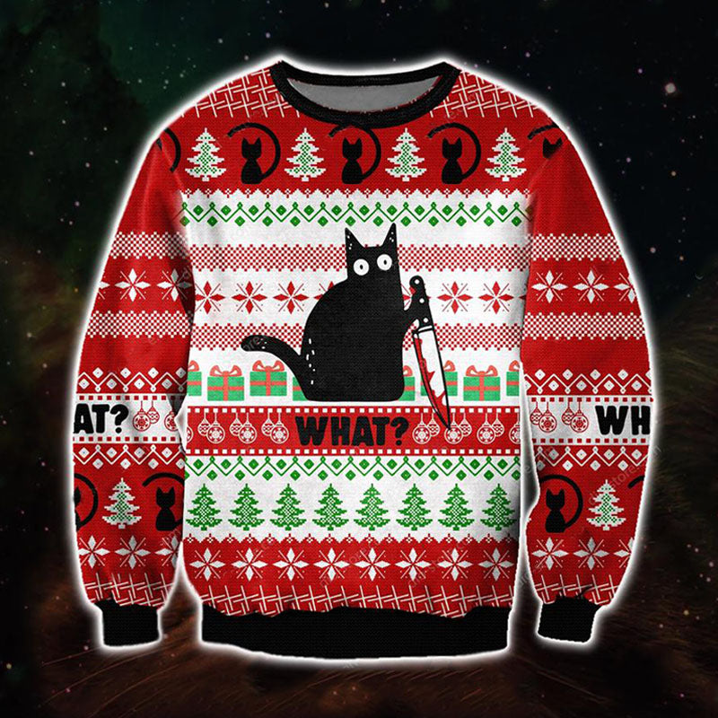 Unisex Black Cat With Knife 3D Christmas Ugly Sweatshirt