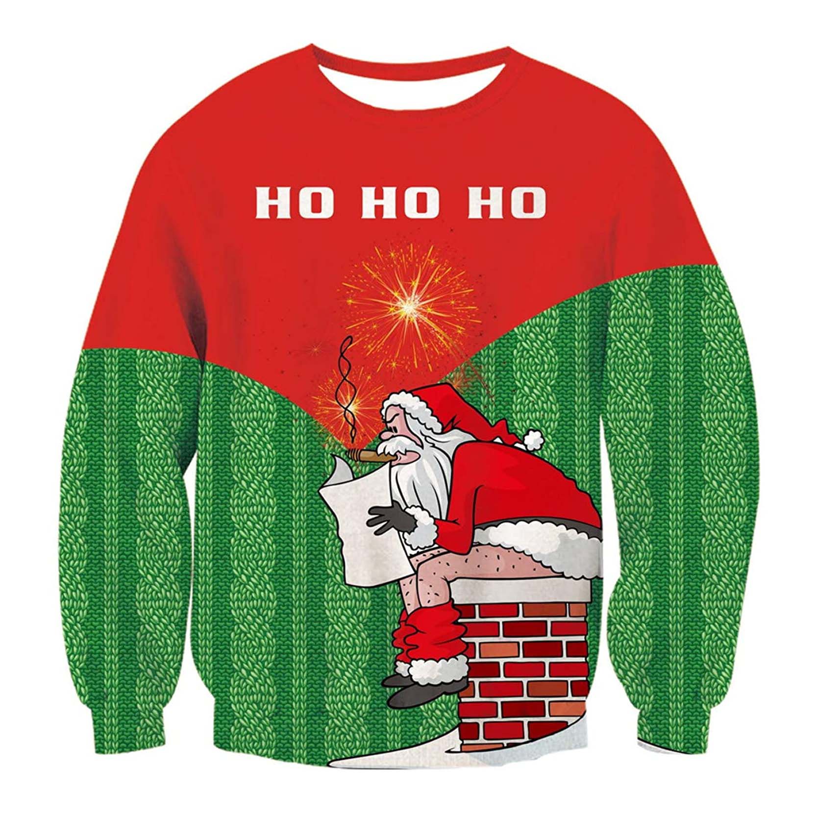 Unisex Santa Ho Ho Ho Print Crew Neck Ugly Christmas Sweatshirt