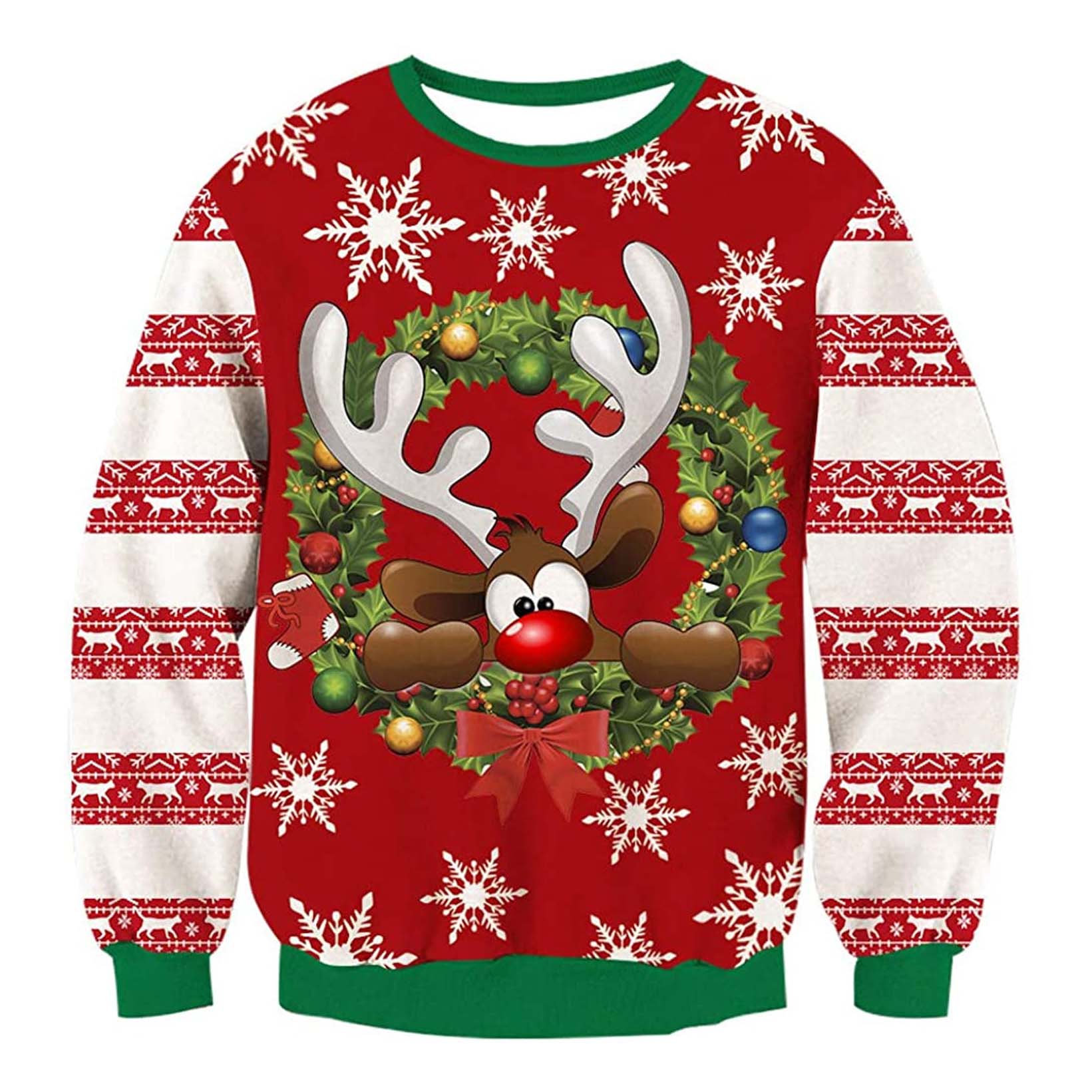 Unisex Snow Reindeer Print Crew Neck Ugly Christmas Sweatshirt