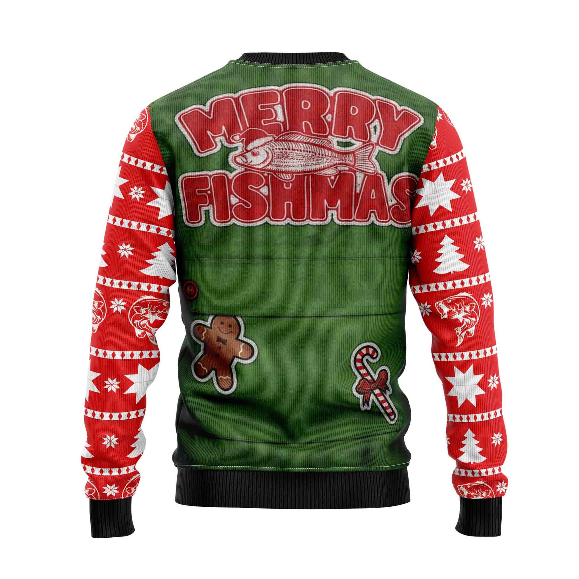 Unisex Vintage Merry Fishmas Print Crew Neck Ugly Christmas Sweatshirt
