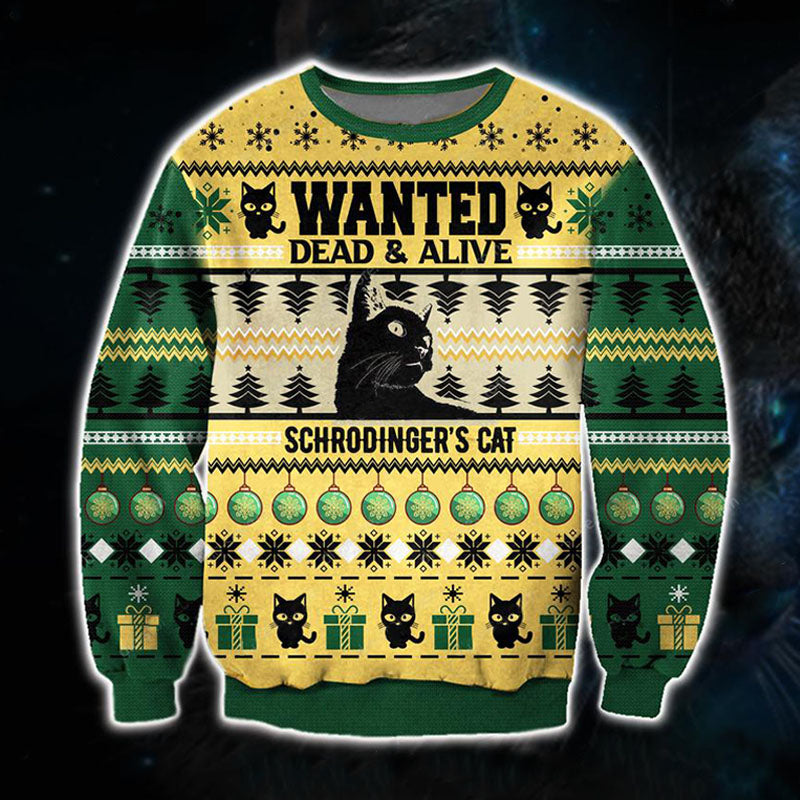Unisex Wanted Death And Life Schrödinger's Cat Funny 3D Christmas Ugly Sweatshirt