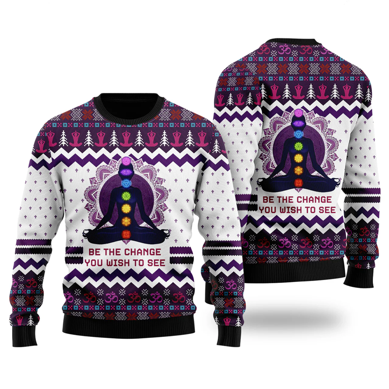 Yoga Be The Change Ugly Christmas Sweater For Men And Women